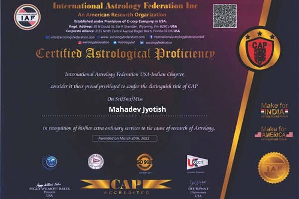 Astrologer Mahadev Jyotish can help you unleash the power of your destiny. With individualised advice and insights, you may harness the cosmic forces and take charge of your life. Put your trust in her knowledge to help you overcome obstacles in life and achieve harmony. Make contact with Mahadev Jyotish, your dependable cosmic alignment partner.